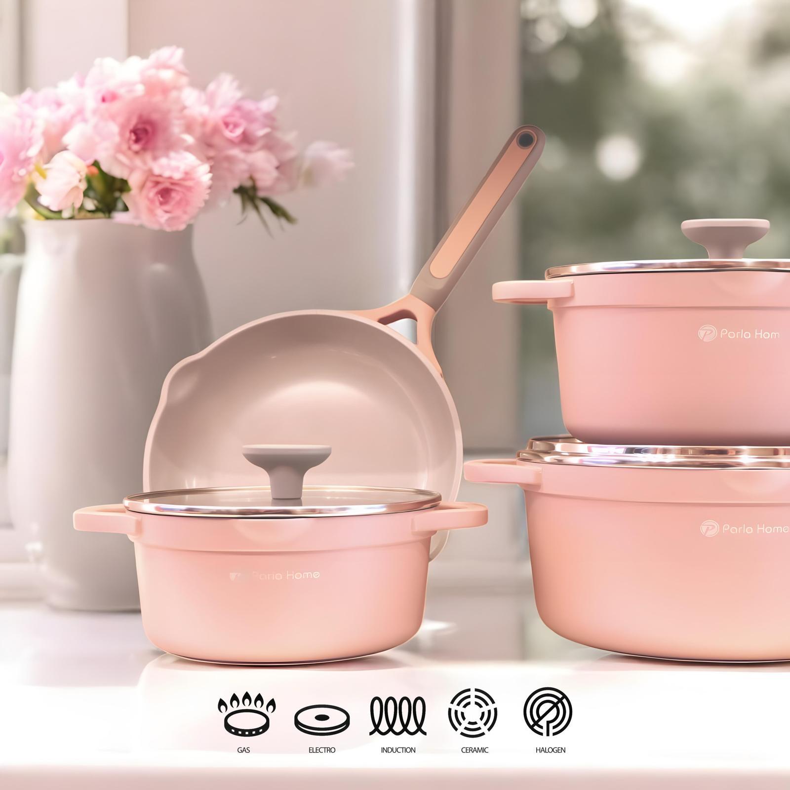 The Coral Series is a 9-piece cookware set made of cast aluminum with a crystal ceramic coating for healthy and effortless cooking.