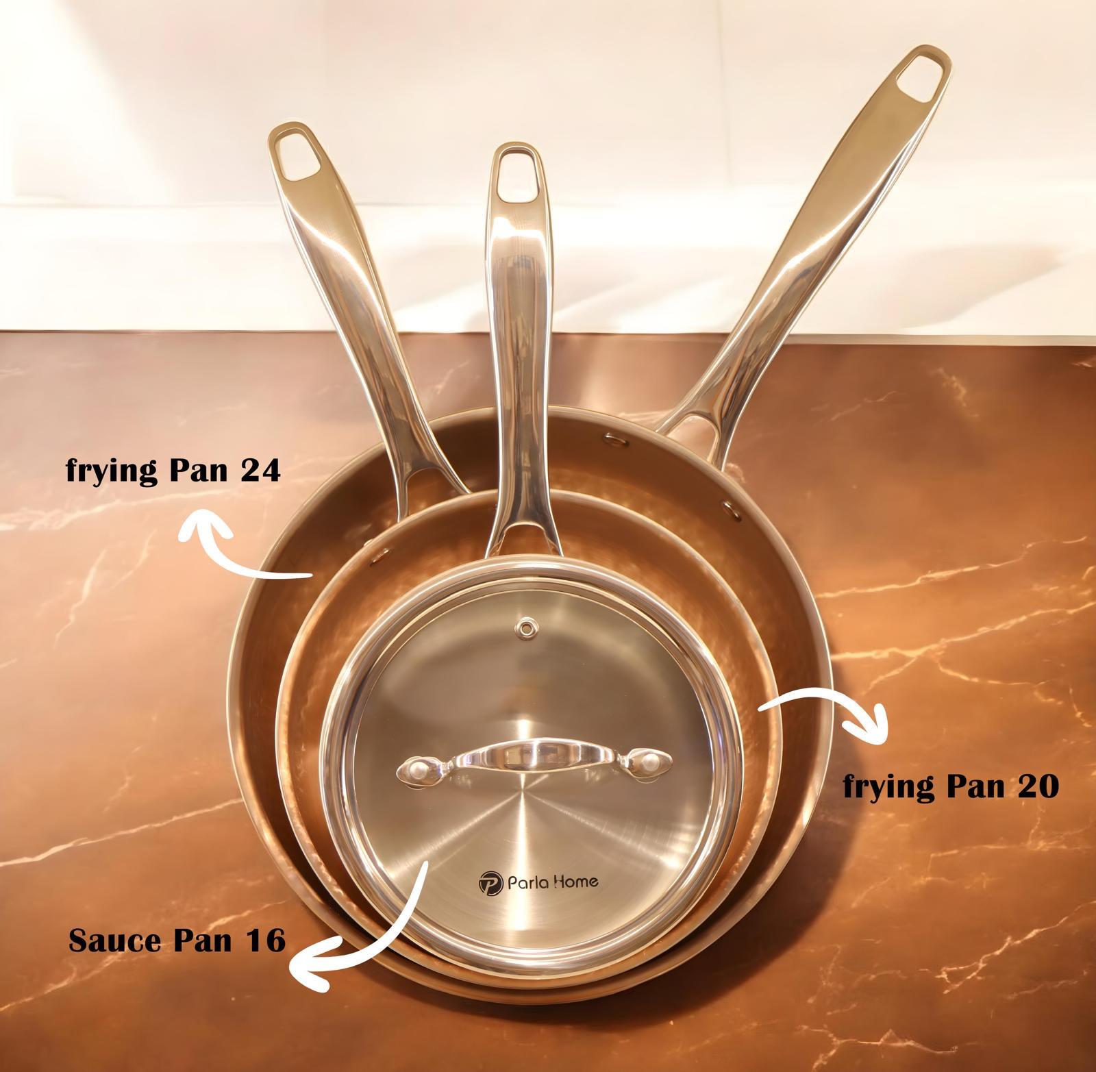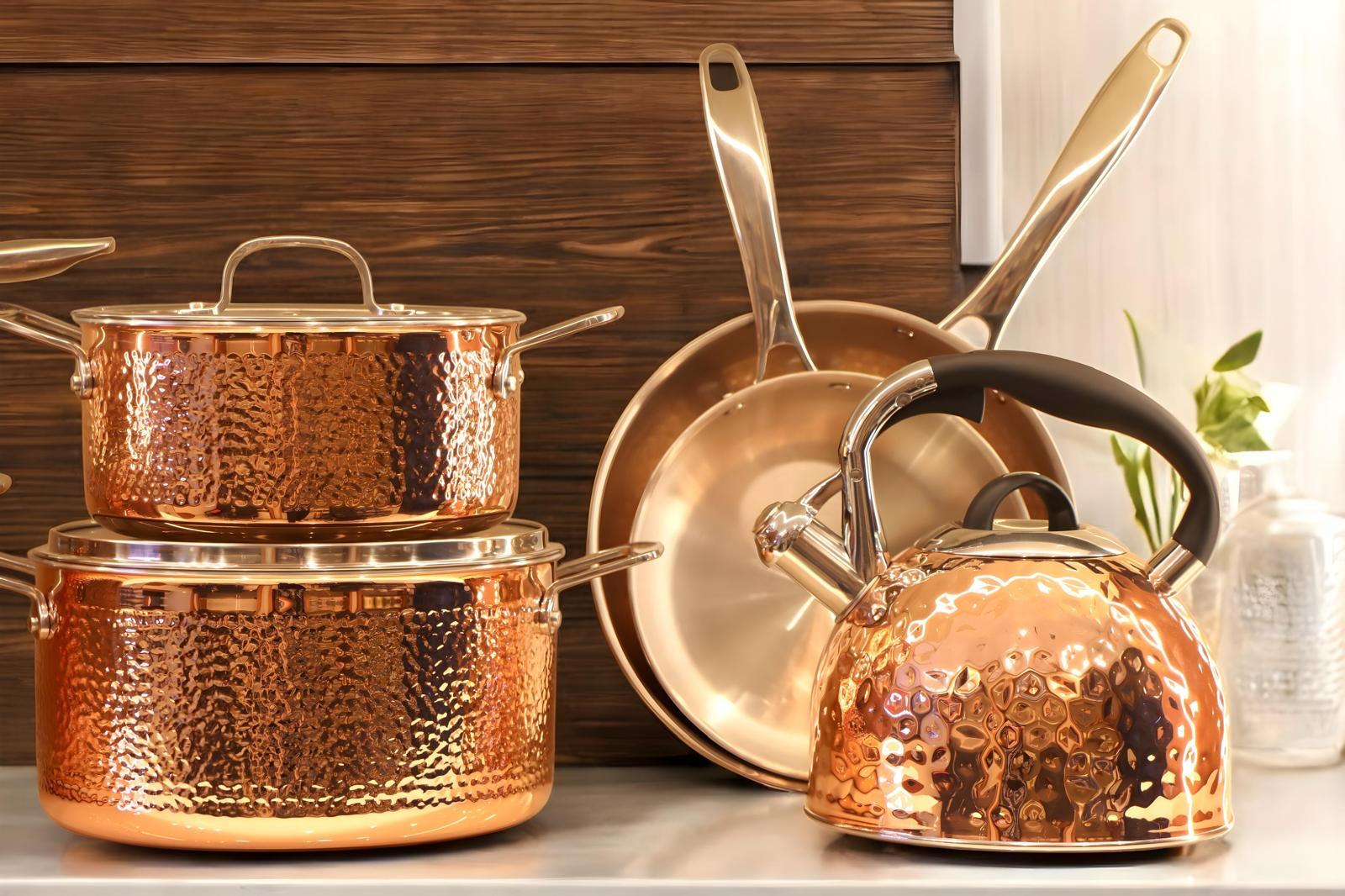 Ontdek de PRESTIGE Series – een adembenemende 12-delige tri-ply pannenset met gehamerde koperlook en hoogwaardig 304 roestvrijstaal. Voor de kookliefhebber die gaat voor tijdloze elegantie én topprestaties.